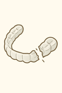 食事や歯みがきのときにうっかりぶつけたり、硬いものを噛んだりして、ワイヤーやブラケットなどの装置が外れたり、取り外しの装置が壊れてしまうことがあります。