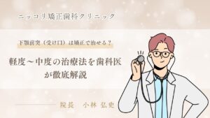 下顎前突は、軽度〜中等度であれば矯正治療により改善できる症例が多く、