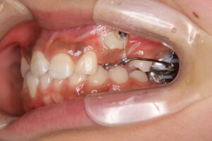 矯正装置のワイヤーとゴムの力でゆっくり口腔内へ引き出す